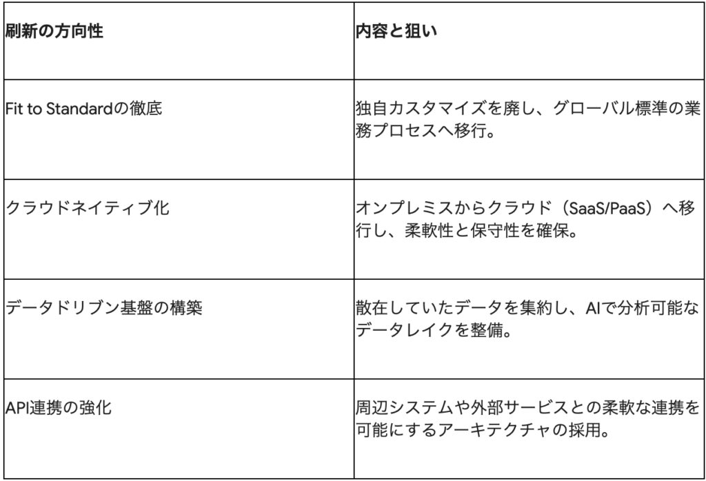 この「壁」の影響は、単なるパッケージの入れ替えに留まりません。多くの企業はこの機会を、全社的なデジタルトランスフォーメーション(dx)の契機と捉えています。以下に、2026年の刷新プロジェクトで見られる主な傾向をまとめます。