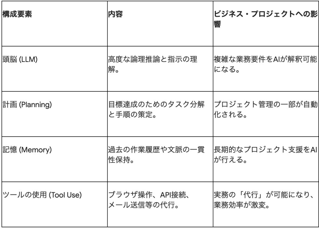 AIエージェントの4つの構成要素と技術的インパクト