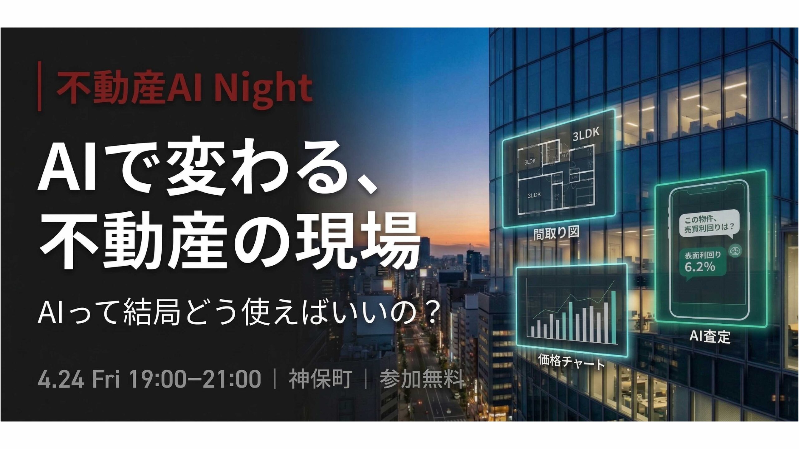「AIエージェントって結局何ができるの?」不動産の不動産の現場で実際にAIエージェントを活用している私たちが、リアルな事例とAI時代のキャリアをお伝えします。 不動産AI Night 〜AIエージェントが変える不動産の現場〜 「AIに興味はあるけど、何から始めればいいかわからない」 「AIエージェントって聞くけど、不動産の実務にどう活かすの?」 そんな不動産パーソンのためのイベントを開催します。 bloom株式会社のAI事業部「AIX」が、販売図面のAI分析や不動産ニュースの自動配信といった身近な事例から、社長の頭の中を再現したAIエージェントによる本プレ採点ライブデモまで、不動産の現場で実際にAIエージェントを活用して課題を解いた事例をお見せします。難しい技術の話ではなく、「現場で本当に使えるもの」 にフォーカスした実践的な内容です。 さらに、AI時代に不動産パーソンが担うべき価値・キャリア戦略についてもお話しします。後半はネットワーキングの時間もあり、参加者同士の情報交換の場としてもご活用いただけます。 ご予約はこちらから🔗https://peatix.com/event/4953594 📋 こんな方におすすめ ・不動産業界で働いていて、AIに興味がある方 ・AIツールを試したが、業務への活かし方がわからない方 ・他社がAIエージェントをどう使っているか知りたい方 ・不動産×テクノロジーに関心がある20代〜30代の方 ・AI時代のキャリア戦略を考えたい方 🗓 開催概要 日時:2026年4月24日(金)19:00〜21:00(受付 18:30〜) 会場:bloom株式会社 オフィス(東京都千代田区神田神保町3-27-7 Takebashi 7 5F) アクセス:東京メトロ半蔵門線「神保町駅」A1出口 徒歩3分 / 都営新宿線「神保町駅」徒歩4分 参加費:無料 主催:bloom株式会社 AIX事業部 📌 当日の流れ 時間:18:30(受付開始) 19:00 オープニング — bloom会社紹介 19:05 Session 1: 不動産×AIエージェントの実例紹介(石崎)販売図面のAI分析、 ニュースの自動配信など身近な事例から、社長AIエージェントによる本プレ採点ライブデモまで 19:25 Session 2: AI時代の不動産キャリア(上山) — 不動産業界がAIでどう変わるか、 これから人が担うべき価値とキャリア戦略 19:45 交流会 — ドリンクを片手に自由にネットワーキング 21:00 閉会 🎤 登壇者 石崎 滉(Ko Ishizaki) bloom株式会社 テクニカルリード / AIX事業部 不動産×AIエージェントの技術開発を主導。経営判断をAIで再現する「CXO Agent」など、不動産の現場の課題をAIエージェントで解くことに取り組む。 上山 卓真(Takuma Ueyama) bloom株式会社 CTO兼CAIO(Chief AI Officer) 不動産事業の現場からAI導入を推進。AI時代に不動産パーソンが担うべき価値とキャリアの在り方を語る実践派。 🎁 参加特典 イベント後、希望者には個別相談の機会をご用意しています。 AI活用に関する質問に、登壇者が直接お答えします。 bloomの事業や働き方に興味がある方には、気軽にお話しできる機会もご用意しています。 ご予約はこちらから🔗https://peatix.com/event/4953594 🔗第11回 不動産ファンド交流会 イベントレポート
