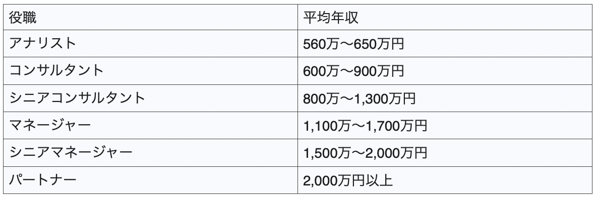 コンサルティングファームの給与体系は、多くの場合、役職(ランク)に応じて明確に定められています。実力主義が徹底されており、年齢や社歴に関わらず、成果を出して昇進することで年収は大きく上昇していきます。以下は、一般的な総合系・IT系コンサルティングファームにおける役職別の年収レンジの目安です。
