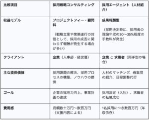 「採用コンサルタント」と「採用エージェント(人材紹介会社)」は、どちらも企業の採用を支援する存在ですが、そのビジネスモデル、立ち位置、アプローチには明確な違いがあります。求職者としてサービスを利用する場合や、転職先として検討する場合には、この違いを正しく理解しておくことが重要です。