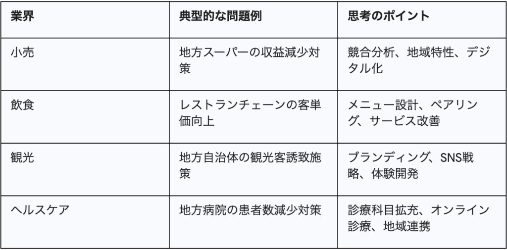 ビジネスケースでは、より実戦的な戦略提案が求められます。2025年以降の出題傾向として、従来の「売上向上」だけでなく「テクノロジー活用」や「サステナビリティ対応」を絡めた問題が増えています。
